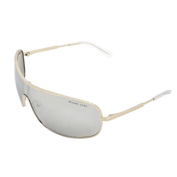 Michael Kors Sunglasses. Series Aix. Series number: MK1139. Color code: 10146G. Shape: Rectangular. Lens Width: 138 mm. Arm Length: 115 mm. 100% UV protection. Frame Material: Metal. Frame Color: Light Gold. Lenses Type: Silver Mirrored. Rim Style: Full-Rim. UPC/EAN code: 725125406130. Michael Kors Aix Silver Mirrored Rectangular Ladies Sunglasses MK1139 10146G 38.