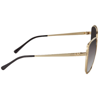 Michael Kors Sunglasses. Series Amsterdam. Series number: MK1090. Color code: 10148G. Shape: Cat Eye. Lens Width: 59 mm. Lens Bridge: 20 mm. Arm Length: 145 mm. 100% UV protection. Frame Material: Metal. Frame Color: Light Gold. Lenses Type: Grey Gradient. Rim Style: Full-Rim. UPC/EAN code: 725125366267. Michael Kors Amsterdam Grey Gradient Cat Eye Ladies Sunglasses MK1090 10148G 59.