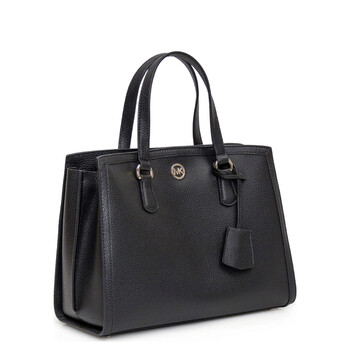 Michael Kors Ladies Satchel. SKU: 30F2G7CS2T-001. Color: Black. Size: 12.75” x H:9.75” x D:6.25”. Michael Kors Chantal Medium Leather Satchel. This satchel features a back slip pocket, a center zip compartment, a front slip pocket, and a snap fastening. 100% leather, Lining: 100% polyester.