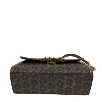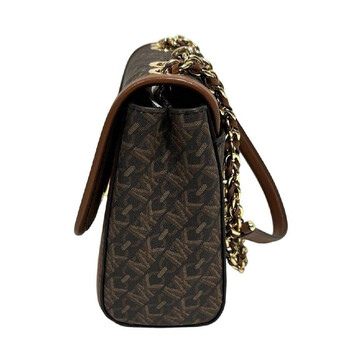 Michael Kors Ladies Shoulder Bag. SKU: 30H3G7PS6B-227. Color: Brown. Michael Kors Convertible Chain Crossbody Bag. This bag features the Empire logo, with a versatile design that can be worn as a crossbody or shoulder bag. It has a shiny front MK logo, a flap with a push-lock closure, gold-tone hardware. exterior includes a back slip pocket, while the interior offers both zip and slip. 80% PVC, 16% Polyester, 4% Cotton. Made in Vietnam.