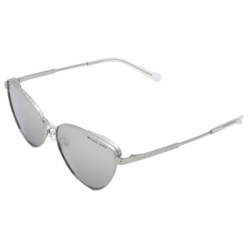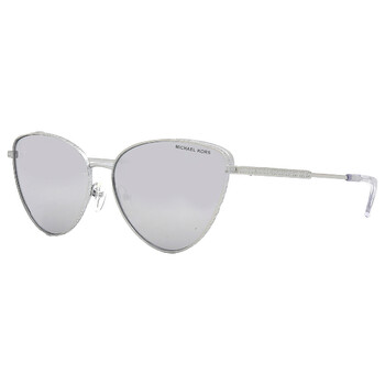 Michael Kors Sunglasses. Series Cortez. Series number: MK1140. Color code: 18936G. Shape: Cat Eye. Lens Width: 59 mm. Lens Bridge: 15 mm. Arm Length: 145 mm. 100% UV protection. Non-Polarized. Frame Material: Metal. Frame Color: Silver. Lenses Type: Silver Mirrored. Rim Style: Full-Rim. UPC/EAN code: 725125410076. Michael Kors Cortez Silver Mirrored Cat Eye Ladies Sunglasses MK1140 18936G 59.