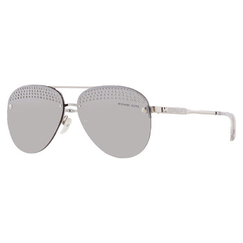 Michael Kors Sunglasses. Series East Side. Series number: MK1135B. Color code: 18896G. Shape: Pilot. Lens Width: 59 mm. Lens Bridge: 12 mm. Arm Length: 140 mm. 100% UV protection. Non-Polarized. Frame Material: Metal. Frame Color: Shiny Silver. Lenses Type: Light Grey Mirrored Silver. Rim Style: Semi-Rimless. UPC/EAN code: 725125398244. Michael Kors East Side Light Grey Mirrored Silver Pilot Ladies Sunglasses MK1135B 18896G 59.