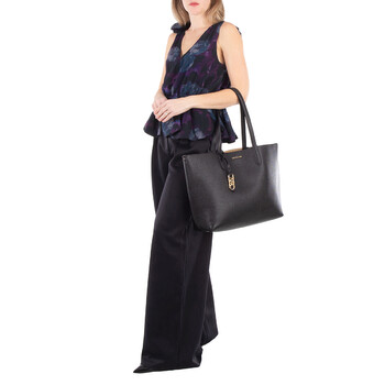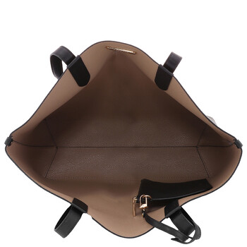 Michael Kors Ladies Tote. SKU: 30F3GZAT4T-001. Color: Black. Size: W:40cm x H:33cm x D:15cm. Michael Kors Eliza Calf Leather Reversible Tote Bag. This tote bag is made of calf leather with a pebbled texture, is reversible, features gold-tone logo lettering, a logo tag, and a logo plaque, along with a removable pouch, an open top, two long top handles, and a main compartment. 100% Calf leather, Lining: 100% Polyester.