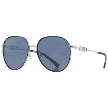 Michael Kors Sunglasses. Series Empire. Series number: MK1128J. Color code: 10158S. Shape: Pilot. Lens Width: 58 mm. Lens Bridge: 17 mm. Arm Length: 145 mm. 100% UV protection. Polarized. Frame Material: Metal. Frame Color: Silver/Blue Tortoise. Lenses Type: Blue Polarized. Rim Style: Full-Rim. UPC/EAN code: 725125399166. Michael Kors Empire Blue Polarized Pilot Ladies Sunglasses MK1128J 10158S 58.