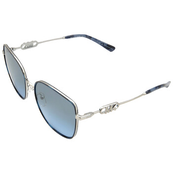 Michael Kors Sunglasses. Series Empire Square 2. Series number: MK1129J. Color code: 10158F. Shape: Square. Lens Width: 56 mm. Lens Bridge: 18 mm. Arm Length: 140 mm. 100% UV protection. Non-Polarized. Frame Material: Metal. Frame Color: Silver/Blue. Lenses Type: Navy Gradient. Rim Style: Full-Rim. UPC/EAN code: 725125395953. Michael Kors Empire Square 2 Navy Gradient Ladies Sunglasses MK1129J 10158F 56.
