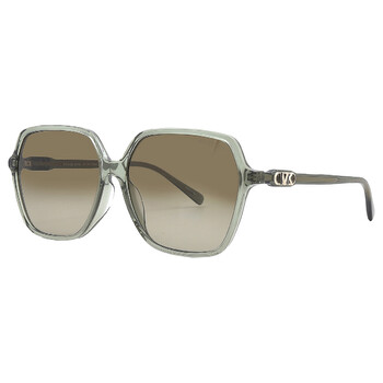 Michael Kors Sunglasses. Series Jasper. Series number: MK2196F. Color code: 394413. Shape: Square. Lens Width: 60 mm. Lens Bridge: 15 mm. Arm Length: 150 mm. 100% UV protection. Frame Material: Acetate. Frame Color: Green Transparent. Lenses Type: Green Gradient. Rim Style: Full-Rim. UPC/EAN code: 725125402354. Michael Kors Jasper Green Gradient Square Ladies Sunglasses MK2196F 394413 60.