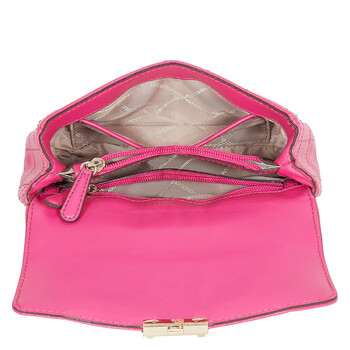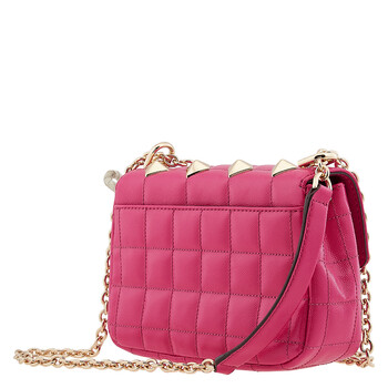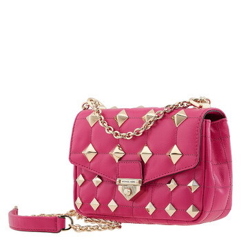 Michael Kors Ladies Shoulder Bag. SKU: 30H1L1SL1A-542. Barcode: 194900934746. Color: Wild Berry. Size: 5.5" W x 8.5" H x 3" D. Michael Kors Ladies Wild Berry Soho Small Studded Quilted Patent Leather Shoulder Bag. The Michael Kors Soho bag features a foldover closure, exterior back slip pocket, chain strap, gold-tone hardware, interior back zip pocket, center zip compartment, front slip pocket.