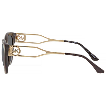 Michael Kors Sunglasses. Series Lake Como. Series number: MK2154F. Color code: 370687. Shape: Pillow. Lens Width: 54 mm. Lens Bridge: 19 mm. Arm Length: 140 mm. 100% UV protection. Frame Material: Plastic/Metal. Frame Color: Brown Signature Pvc/Gold. Lenses Type: Dark Grey. Rim Style: Full-Rim. UPC/EAN code: 725125375702. Michael Kors Lake Como Dark Grey Pillow Ladies Sunglasses MK2154F 370687 54.