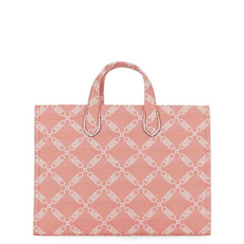 Michael Kors Ladies Tote. SKU: 30S4G3GT3J-886. Color: Pink. Size: 15.5"W X 11.75"H X 5.25"D. Michael Kors Large Gigi Logo Jacquard Tote Bag. This tote bag features monogram engraving, a brand logo jacquard design, two flat top handles, a detachable shoulder strap, an open top, and an interior zippered pocket. 53.2% cotton/46.8% polyester. Made in Indonesia.