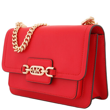 Michael Kors Ladies Shoulder Bag. SKU: 30S2G7HL3L-607. Color: Red. Size: W:9.25” x H:6” x D:2.75”. Michael Kors Large Heather Leather Shoulder Bag. This shoulder bag is made of leather and features a fold-over top, an exterior back snap pocket, interior details including back and front slip pockets and six card slots, a polyester lining, and a snap fastening. 100% Leather, 100% Polyester.