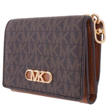 Michael Kors Ladies Wallets. SKU: 34F2G7PD8B-252. Barcode: 196163524900. Color: Multicolor. Size: 5"W x 3.5"H x 1.5"D. Michael Kors Signature Logo Parker Medium Tri-Fold Wallet. Crafted from logo-print canvas with gold-tone hardware, this wallet offers a back zip pocket and an interior that includes two back slip pockets, a bill compartment, an ID window, and six card slots, all enclosed with a snap fastening and lined in 100% polyester. 89.4% coated canvas, 9.6% polyester, 1% polyurethane.