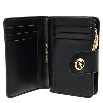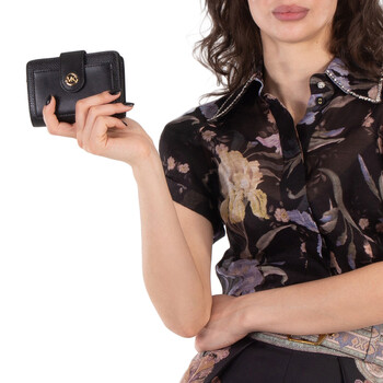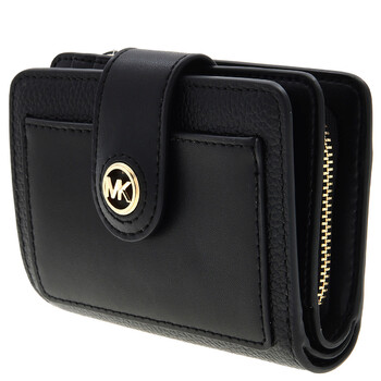 Michael Kors Ladies Wallets. Mk Charm series. SKU: 32H3G0KD5L001. Color: Black. Size: 4.75"W x 3.5"H x 1.25"D. Michael Kors Small Mercer Leather Wallet. This wallet is made of calf leather, featuring a logo plaque, strap fastening, internal card slots, and an internal zip-fastening pocket. Lining: Polyester 100%, Body: Calf Leather 100%.