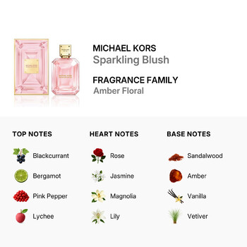 Radiant and bright, Michael Kors Sparkling Blush is a concentrated eau de parfum made for the woman who knows how to shine. Whether you're dressing up for a night out or simply want to add a touch of elegance to your everyday life, this fragrance will help you sparkle with confidence.