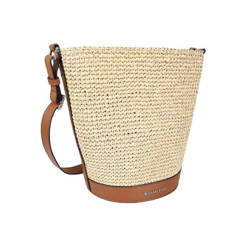Michael Kors Ladies Messenger. SKU: 30S4S10M8W969. Color: Brown. Michael Kors Townsend Bucket Crossbody Bag. The crossbody bag features logo details, an adjustable strap, a snap button fastening, and silver-tone hardware, all finished with a straw texture. 100% Polypropylene, Trim: 100% leather. Made in Philippines.