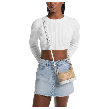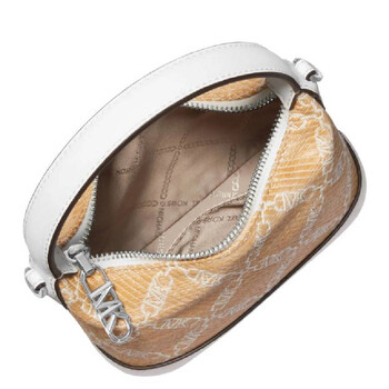Michael Kors Ladies Crossbody. SKU: 32S4SWGC5S884. Color: White. Size: W: 17.5 cm x H: 7 cm x D: 14 cm. Michael Kors Wythe Jacquard Crossbody Bag. This crossbody features a chain monogram pattern, an adjustable long shoulder strap, a zipper closure, a top handle, an Empire logo metal pull, and one main compartment. Fabric material: woven fabric/artificial leather.