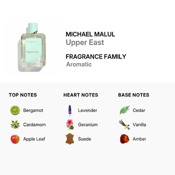 Upper East opens with refreshing top notes of bergamot, cardamom, and apple leaf, creating an invigorating first impression. As the fragrance unfolds, heart notes of lavender, geranium, and suede emerge, adding a touch of elegance and depth. Finally, the base notes of cedar, vanilla, and amber provide a warm and lasting finish that captivates the senses.