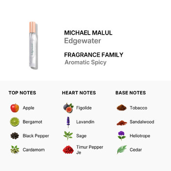 The base notes bring depth and lasting power with a warm, woody foundation of tobacco, sandalwood, cedar, and patchouli. Heliotrope, vanilla, and tonka bean add a creamy finish that makes this scent truly unforgettable. Designed for the modern man, Edgewater is a fragrance that speaks of adventure, elegance, and timeless style.