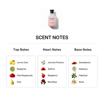 - Jasmine flowers, Saffron, Raspberry, Red rose