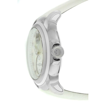 Silver-tone stainless steel case with a white leather strap. Fixed silver-tone stainless steel bezel. White dial with silver-tone hands and diamond hour markers. Minute markers around the outer rim. Dial Type: Analog. Luminescent hands and markers. Date display at the 12 o'clock position. Quartz movement. Solid case back. Round case shape, case size: 37 mm. Buckle clasp. Water resistant at 30 meters / 100 feet. Functions: date, hour, minute, second. Icon Snow Series. Luxury watch style. Watch label: Swiss Made. Michel Jordi Icon Snow Quartz Diamond White Dial Ladies Watch 4011400203.