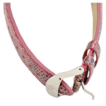 Stainless steel case. Pink lizard bracelet. Mother of pearl dial with chronograph and date display at 6 o'clock. Fixed stainless steel bezel. Mineral crystal. 33mm x 46mm case diameter. Quartz movement. Water resistant at 50 meters (165 feet).