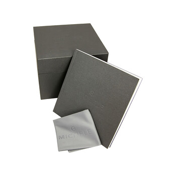Yellow gold-tone stainless steel case and bracelet. Fixed yellow gold-tone bezel set with 100 diamonds (0.6 ctw). Silver dial with luminous yellow gold-tone hands and Roman numeral hour markers. Minute markers around the outer rim. Dial Type: Analog. Luminescent hands. Date display at the 6 o'clock position. Chronograph - two sub-dials displaying: 60 second and 30 minute. Day of the week sub-dial. Quartz movement. Scratch resistant sapphire crystal. Pull / push crown. Solid case back. Round case shape. Case size: 38 mm. Case thickness: 10.5 mm. Band width: 18 mm. Deployment clasp with a push button release. Water resistant at 50 meters / 165 feet. Functions: chronograph, date, hour, minute, second. Additional Info: suitable for swimming and showering. Dress watch style. Watch label: Swiss Movement. Michele Serein Diamond Chronograph Ladies Watch MWW21A000011.