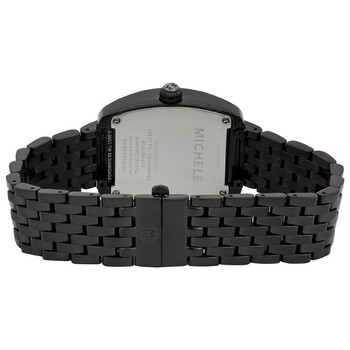Black ion-plated stainless steel case with a black ion-plated stainless steel bracelet. Fxed black ion-plated bezel set with 168 diamonds. Texture black enamel dial with black hands and Arabic numeral hour markers. Seconds sub-dial at the 6 o'clock position. Swiss quartz movement. Scratch resistant sapphire crystal. Solid case back. Case dimensions: 29 mm x 35 mm. Water resistant at 50 meters / 165 feet. Functions: hours, minutes, small seconds. Michele Urban Mini Noir Diamond Ladies Watch MWW02A000511.