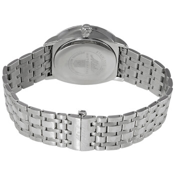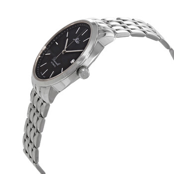 Stainless steel case with a stainless steel bracelet. Fixed stainless steel bezel. Black dial with silver-tone hands and index hour markers. Minute markers around the outer rim. Dial Type: Analog. Date display at the 3 o'clock position. Automatic movement. Scratch resistant sapphire crystal. Pull / push crown. Solid case back. Round case shape. Case size: 37 mm. Band width: 18 mm. Fold over clasp with a push button release. Water resistant at 30 meters / 100 feet. Functions: date, hour, minute, second. Baroncelli Series. Dress watch style. Watch label: Swiss Made. Mido Baroncelli Automatic Black Dial Unisex Watch M38954181.