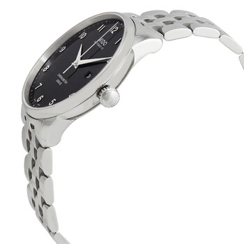 Stainless steel case with a 1 stainless steel bracelet. Fixed silver-tone stainless steel bezel. Black dial with silver-tone hands and Arabic numeral hour markers. Minute markers around the outer rim. Dial Type: Analog. Date display at the 3 o'clock position. Mido Calibre 80 automatic movement with an 80-hour power reserve. Scratch resistant sapphire crystal. Pull / push crown. Transparent case back. Round case shape, case size: 42 mm, case thickness: 9.8 mm. Band width: 22 mm. Fold over clasp with a safety release. Water resistant at 50 meters / 165 feet. Functions: date, hour, minute, second, chronometer. Baroncelli Jubilee Series. Casual watch style. Watch label: Swiss Made. Mido Baroncelli Jubilee Automatic Chronometer Black Dial Men's Watch M0376081105200.