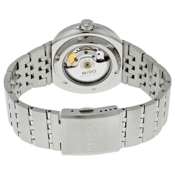 Stainless steel case with a stainless steel bracelet. Fixed stainless steel bezel. Black dial with luminous black hands and index hour markers. Minute markers around the outer rim. Dial Type: Analog. Luminescent hands and markers. Day of the week and date display at the 3 o'clock position. Calibre 80.621 COSC automatic movement with an 80-hour power reserve. Scratch resistant sapphire crystal. Screw down crown. Transparent case back. Case size: 42 mm. Case thickness: 10.08 mm. Round case shape. Band width: 17 mm. Deployment clasp with a push button release. Water resistant at 100 meters / 330 feet. Functions: date, day, hour, minute, second. Luxury watch style. Watch label: Swiss Made. Mido Chronometer Automatic Black Dial Men's Watch M8340.4.18.19.