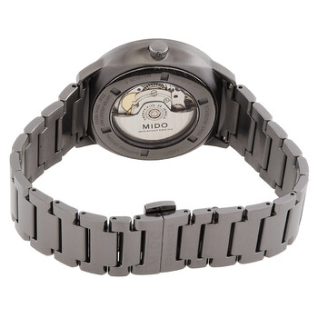 Anthracite PVD stainless steel case and bracelet. Fixed anthracite PVD stainless steel bezel. Black dial with black hands and index hour markers. Minute markers around the outer rim. Dial Type: Analog. Luminescent hands and markers. Date display at the 6 o'clock position. Mido Calibre 80 (base ETA C07.651) Automatic movement, containing 25 Jewels, bitting at 21600 vph, and has a power reserve of approximately 80 hours. Scratch resistant sapphire crystal. Pull / push crown. Transparent case back. Round case shape, case size: 42 mm, case thickness: 12 mm. Band width: 22 mm. Fold over clasp with a safety release. Water resistant at 50 meters / 165 feet. Functions: big date, hour, minute, second. Commander Series. Casual watch style. Watch label: Swiss Made. Mido Commander Big Date Automatic Black Dial Men's Watch M0216263305100.