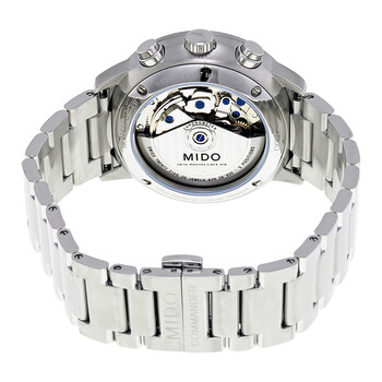 Stainless steel case with a stainless steel bracelet. Fixed stainless steel bezel. Ivory dial with luminous hands and index hour markers. Minute markers around the outer rim. Dial Type: Analog. Luminescent hands and markers. Day of the week and date display at the 3 o'clock position. Chronograph - three sub-dials displaying: 60 second, 30 minute and 12 hour. ETA / VALJOUX Cal. 7750 2 automatic movement with a 44-hour power reserve. Scratch resistant sapphire crystal. Transparent case back. Case size: 43 mm. Case thickness: 14.89 mm. Round case shape. Band width: 22 mm. Butterfly clasp. Water resistant at 50 meters / 165 feet. Functions: chronograph, date, day, hour, minute, second. Additional Info: limited edition of 999 pieces. Casual watch style. Watch label: Swiss Made. Mido Commander II Limited Edition Chronograph Automatic Men's Watch M016.415.11.261.00.