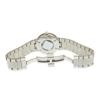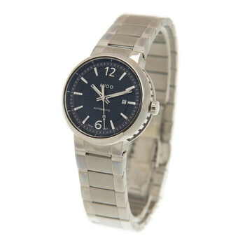 Silver-tone stainless steel case and bracelet. Fixed silver-tone stainless steel bezel. Black dial with silver-tone hands and index hour markers. Minute markers around the outer rim. Dial Type: Analog. Luminescent hands and markers. Date display at the 3 o'clock position. Automatic movement. Scratch resistant sapphire crystal. Transparent see through case back. Round case shape, case size: 31 mm. Deployment with push button release clasp. Functions: date, hour, minute, second. Great Wall Series. Luxury watch style. Watch label: Swiss Made. Mido Great Wall Automatic Black Dial Unisex Watch M0152301105700.