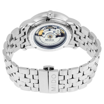 Stainless steel case with a stainless steel bracelet. Fixed stainless steel bezel. Black dial with silver-tone hands and Arabic numeral hour markers. Minute markers around the outer rim. Dial Type: Analog. Date display between 4 and 5 o'clock position. ETA caliber 2836-2 (COSC) automatic movement, based upon ETA 2824-2, containing 25 Jewels, bitting at 28800 vph, and has a power reserve of approximately 40 hours. Scratch resistant sapphire crystal. Pull / push crown. Skeleton case back. Round case shape, Case size: 42 mm. Case thickness: 10.5 mm. Band width: 22 mm. Deployment clasp. Water resistant at 50 meters / 165 feet. Functions: date, hour, minute, second, chronometer. Jubilee Series. Casual watch style. Watch label: Swiss Made. Item Variations: M8690 4 18 1, M8690-4-18-1, M8690/4/18/1, M86904181. Mido Jubilee Automatic Black Dial Stainless Steel Men's Watch M86904181.