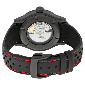 Black PVD stainless steel case with a black (perforated) leather strap. Fixed black PVD bezel. Anthracite dial with luminous silver-tone hands and dot hour markers. Arabic numerals mark the 3, 6, 9 and 12 o'clock positions. Minute markers around the outer rim. Dial Type: Analog. Luminescent hands and markers. Date display between the 4 and 5 o'clock positions. Automatic movement. Scratch resistant sapphire crystal. Screw down crown. Transparent case back. Case size: 42 mm. Case thickness: 11.23 mm. Round case shape. Band width: 22 mm. Deployment clasp. Water resistant at 100 meters / 330 feet. Functions: date, hour, minute, second. Luxury watch style. Watch label: Swiss Made. Mido Multifort Automatic Anthracite Dial Men's Watch M025.407.36.061.00.