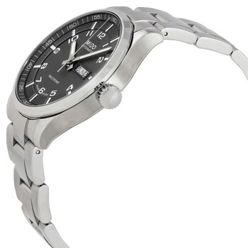 Stainless steel case with a stainless steel bracelet. Fixed stainless steel bezel. Gray dial with luminous fill silver-tone hands and Arabic numeral / index hour markers. Minute markers around the outer rim. Dial Type: Analog. Luminescent hands and markers. Day of the week and date display at the 3 o'clock position. Mido calibre Powermatic 80 (ETA C07.621) automatic movement with an 80-hour power reserve. Scratch resistant sapphire crystal. Transparent case back. Case size: 42 mm. Case thickness: 11 mm. Round case shape. Band width: 20 mm. Deployment clasp with a push button release. Water resistant at 100 meters / 330 feet. Functions: date, day, hour, minute, second. Dress watch style. Watch label: Swiss Made. Mido Multifort Automatic Gray Dial Men's Watch M005.430.11.082.80