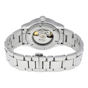 Stainless steel case with a stainless steel bracelet. Fixed stainless steel bezel. Silver dial with luminous black hands and Arabic numeral hour markers. Minute markers around the outer rim. Dial Type: Analog. Luminescent hands and markers. Day of the week and date display at the 3 o'clock position. Powermatic 80 (ETA C07.621) automatic movement with an 80-hour power reserve. Scratch resistant sapphire crystal. Screw down crown. Skeleton case back. Case size: 42 mm. Case thickness: 10.95 mm. Round case shape. Band width: 22 mm. Deployment clasp. Water resistant at 100 meters / 330 feet. Functions: date, day, hour, minute, second. Dress watch style. Watch label: Swiss Made. Mido Multifort Automatic Silver Dial Men's Watch M005.430.11.032.80.