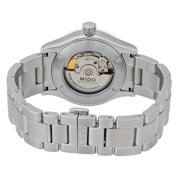 Stainless steel case with a stainless steel bracelet. Fixed stainless steel bezel. White dial with silver-tone hands and Arabic numeral / index hour markers. Arabic numeral minute markers (at 5 minute intervals). Minute markers around the outer rim. Dial Type: Analog. Luminescent hands. Day of the week and date display at the 3 o'clock position. ETA caliber 2836-2 automatic movement, based upon ETA 2824-2, containing 25 Jewels, bitting at 28800 vph, and has a power reserve of approximately 40 hours. Scratch resistant sapphire crystal. Screw down crown. Transparent case back. Round case shape. Case size: 38 mm. Case thickness: 11.05 mm. Band width: 20 mm. Deployment clasp with a push button release. Water resistant at 100 meters / 330 feet. Functions: date, day, hour, minute, second. Multifort Series. Luxury watch style. Watch label: Swiss Made. Mido Multifort Automatic White Dial 38 mm Watch M018.830.11.012.00.