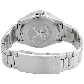 Silver-tone stainless steel case and bracelet. Uni-directional rotating blue ceramic bezel. Blue dial with silver-tone hands and index hour markers. Minute markers around the outer rim. Dial Type: Analog. Luminescent hands and markers. Day of the week and date display at the 3 o'clock position. Mido Calibre Powermatic 80 (ETA C07.621) Automatic movement, based upon ETA 2824-2, containing 23 Jewels, bitting at 21600 vph, and has a power reserve of approximately 80 hours. Scratch resistant sapphire crystal. Screw down crown. Solid case back. Round case shape, case size: 42.5 mm, case thickness: 12.3 mm. Band width: 22 mm. Folding clasp. Water resistant at 200 meters / 660 feet. Functions: date, day, hour, minute, second. Ocean Star Series. Watch label: Swiss Made. Mido Ocean Star Automatic Blue Dial Men's Watch M0424301104100.