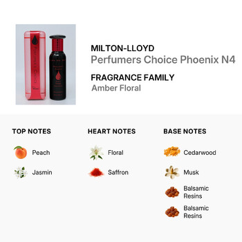 Experience the captivating allure of Milton-Lloyd Perfumers Choice Phoenix N4, a luxurious amber floral fragrance designed for ladies who appreciate elegance and sophistication. Crafted in the United Kingdom, this exquisite eau de parfum spray delivers a beautifully balanced aroma that leaves a lasting impression.