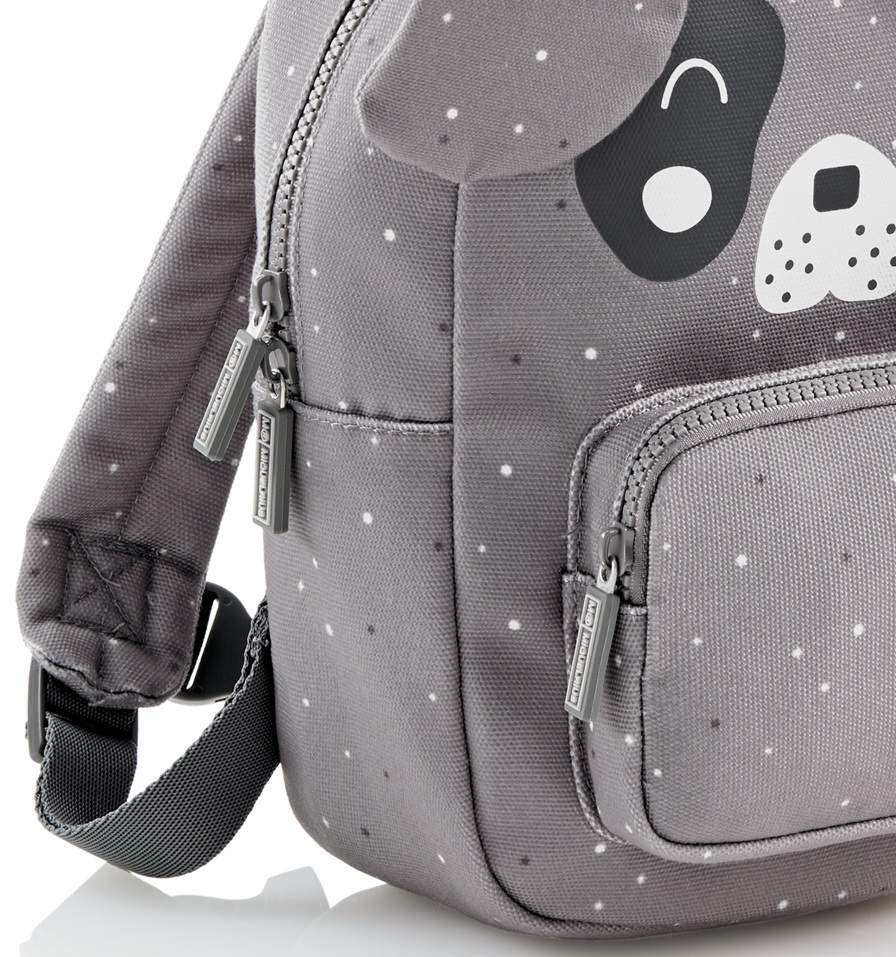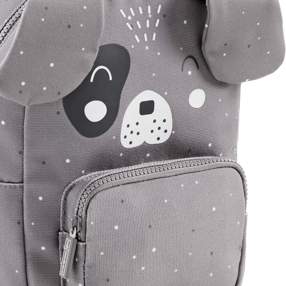 MIQUELRIUS - პატარა საბავშვო ზურგჩანთა სერიიდან Wild Puppies. ზურგჩანთას აქვს ერთი მთავარი განყოფილება და პატარა წინა ჯიბე. სახელურები რეგულირებადია, ასევე აქვს საკიდი და გულმკერდის სამაგრი. აქვს სახალისო დიზაინი. დამზადებულია გადამუშავებული მასალისგან და არის ეკოლოგიურად სუფთა პროდუქტი, რაც ბავშვებს ადრეული ასაკიდან ასწავლის გარემოზე ზრუნვას.