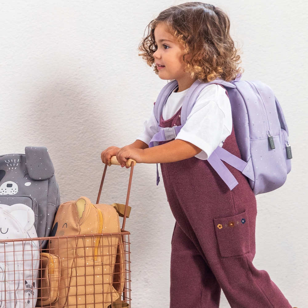 MIQUELRIUS - პატარა საბავშვო ზურგჩანთა სერიიდან Wild Puppies. ზურგჩანთას აქვს ერთი მთავარი განყოფილება და პატარა წინა ჯიბე. სახელურები რეგულირებადია, აქვს საკიდი და გულმკერდის სამაგრი. გამოირჩევა სახალისო დიზაინით. დამზადებულია გადამუშავებული მასალისგან და არის ეკოლოგიურად სუფთა პროდუქტი, რაც ბავშვებს ადრეული ასაკიდან ასწავლის გარემოზე ზრუნვას.
