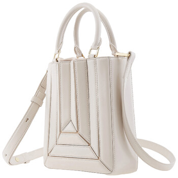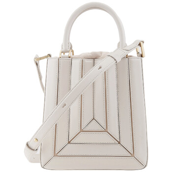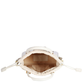 Mlouye Ladies Tote. SKU: 10-043-121 -DOVE. Barcode: 8682035414612. Color: White. Size: 6.7 x 7 x 2 in. Mlouye White Sera Tall Mini Tote. Crafted from Italian calf leather, this bag showcases a 3D façade and a suede drawstring top. The main compartment is spacious enough to fit a large phone, such as the iPhone 15 Pro Max, and is lined with soft microsuede. It also features an adjustable and detachable strap, complemented by gold hardware. Shoulder drop: 55 - 39 cm (21.6 - 15.3 in).