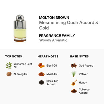 Immerse yourself in the enchanting aura of Molton Brown's Mesmerising Oudh Accord & Gold. This ladies fragrance, launched in 2015, is a woody aromatic masterpiece, perfect for the modern woman who appreciates a deep, dark, and refined presence. This perfume reflects a unique blend of sweet and green notes, promising to mesmerize everyone around you.