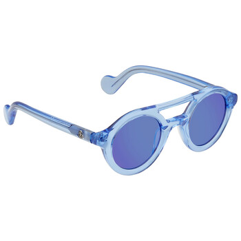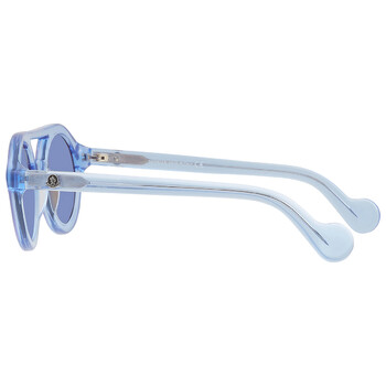 Moncler Sunglasses. Series number: ML0014. Color code: 84L. Shape: Round. Lens Width: 47 mm. Lens Bridge: 26 mm. Arm Length: 145 mm. 100% UV protection. Frame Material: Plastic. Frame Color: Shiny Light Blue. Lenses Type: Blue. Rim Style: Full-Rim. UPC/EAN code: 664689930814. Moncler Blue Round Unisex Sunglasses ML0014 84L 47 26 145.