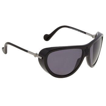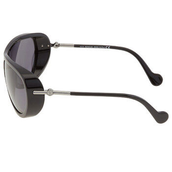 Moncler Sunglasses. Series number: ML0128. Color code: 01D. Shape: Mask. Lens Width: 61 mm. Lens Bridge: 14 mm. Arm Length: 125 mm. 100% UV protection. Frame Material: Plastic. Frame Color: Shiny Black. Lenses Type: Grey. Rim Style: Full-Rim. UPC/EAN code: 889214098689. Moncler Grey Mask Unisex Sunglasses ML0128 01D 61.