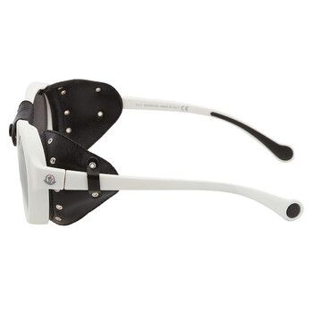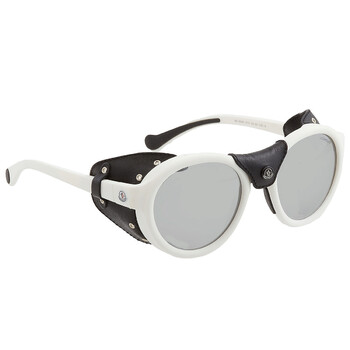 Moncler Sunglasses. Series number: ML0046. Color code: 21. Shape: Round. Lens Width: 52 mm. Lens Bridge: 20 mm. Arm Length: 140 mm. 100% UV protection. Frame Material: Plastic. Frame Color: White. Lenses Type: Grey. Rim Style: Full-Rim. UPC/EAN code: 664689925322. Moncler Grey Round Unisex Sunglasses ML0046 21C 52.