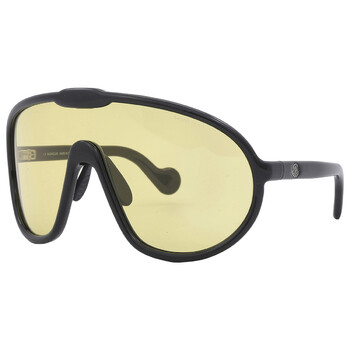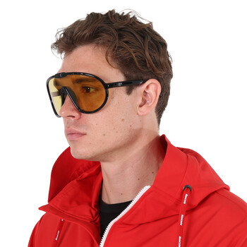 Moncler Sunglasses. Series Halometre. Series number: ML0184. Color code: 01E. Shape: Shield. Lens Width: 00 mm. Lens Bridge: 00 mm. Arm Length: 125 mm. 100% UV protection. Non-Polarized. Frame Material: Plastic. Frame Color: Shiny Black. Lenses Type: Amber. Rim Style: Full-Rim. UPC/EAN code: 889214234391. Moncler Halometre Amber Shield Unisex Sunglasses ML0184 01E 00.