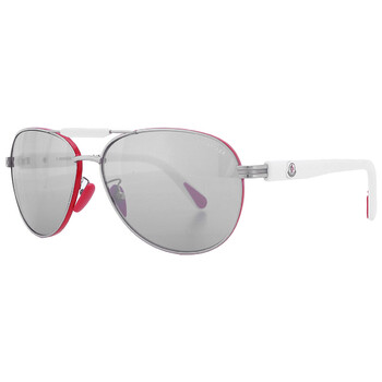 Moncler Sunglasses. Series Steller. Series number: ML0241-H. Color code: 16C. Shape: Pilot. Lens Width: 62 mm. Lens Bridge: 14 mm. Arm Length: 140 mm. 100% UV protection. Non-Polarized. Frame Material: Metal. Frame Color: Shiny Palladium/White. Lenses Type: Smoke Mirror. Rim Style: Full-Rim. UPC/EAN code: 889214387103. Moncler Steller Smoke Mirror Pilot Unisex Sunglasses ML0241-H 16C 62.
