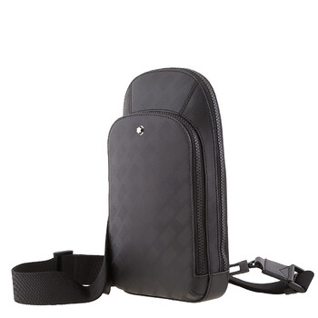 Montblanc Men's Backpack. SKU: 129971. Color: Black. Size: 6.6" x 2.3" x 11.6". Montblanc Black Extreme 3.0 Cowhide Sling Bag. Crafted from embossed full-grain bovine leather, the sling bag is accentuated by its distinctive Extreme 3.0 motif and sleek black metal fittings. With its array of internal pockets and credit card slots, this bag ensures that all your essentials are conveniently within reach.