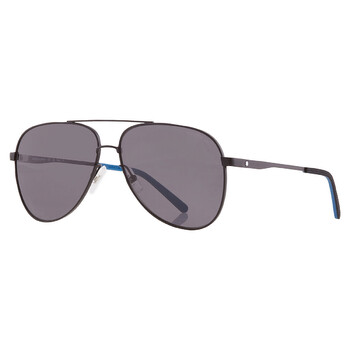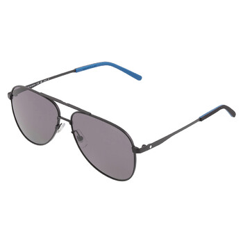 Montblanc Sunglasses. Color code: 005. Shape: Pilot. Lens Width: 59 mm. Lens Bridge: 13 mm. Arm Length: 145 mm. 100% UV protection. Non-Polarized. Frame Material: Metal. Frame Color: black/Blue. Lenses Type: Grey. Rim Style: Full-Rim. UPC/EAN code: 889652283654. Montblanc Grey Pilot Men's Sunglasses MB0103S 005 59.